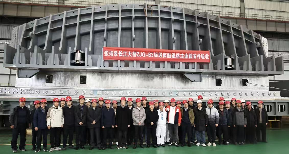 張靖皋長江大橋是目前在建的世界最大跨度懸索橋,全長7859米,其中南航道橋主跨2300米,實現(xiàn)了中國橋梁從千米跨徑到兩千米跨徑的突破。大橋建設過程中刷新六項“世界之最”、實現(xiàn)六項“世界首創(chuàng)”。建成后將大幅縮短張家港、 靖江、如皋三地的通行時間,極大地促進長三角區(qū)域一體化發(fā)展,優(yōu)化長江干線過江通道布局。中船武漢船機公司承制了張靖皋長江大橋南航道橋主索鞍2套,北航道橋主索鞍4套、散索鞍4套和索夾284套。
